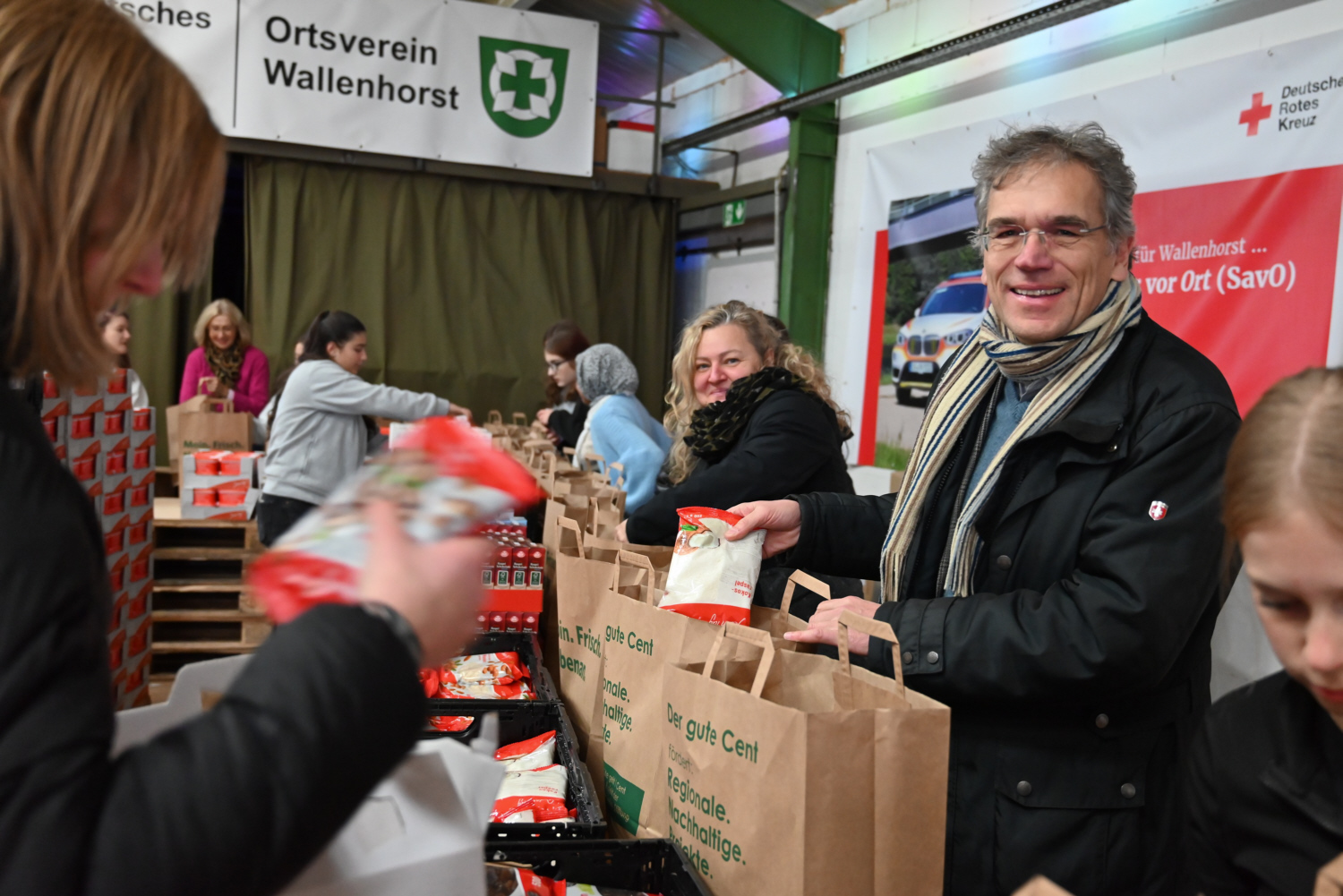 Bereits zum dritten Mal packen mehr als 100 ehrenamtliche Helferinnen und Helfer insgesamt 15 Zutaten für eine Tüte voller Weihnachtszauber zusammen: Mehl, Zucker, Margarine, Backpulver, Streusel, Mandeln und vieles mehr gehören zum Plätzchenbacken dazu: „Hier fließen viele gute Dinge zusammen“, erklärt Johannes Andrews, Geschäftsführer der DiakonieStiftung Osnabrück. „Spender wie Bünting, die Kirchenkreise Osnabrück, Bramsche, Melle-Georgsmarienhütte, die reformierte Gemeinde Osnabrück sowie zahlreiche Privatpersonen ermöglichen mit ihrer finanziellen Unterstützung, dass wir Lebensmittel für 3.800 Tüten einkaufen konnten. Dafür möchte ich mich im Namen aller Aktiven herzlich bedanken.“