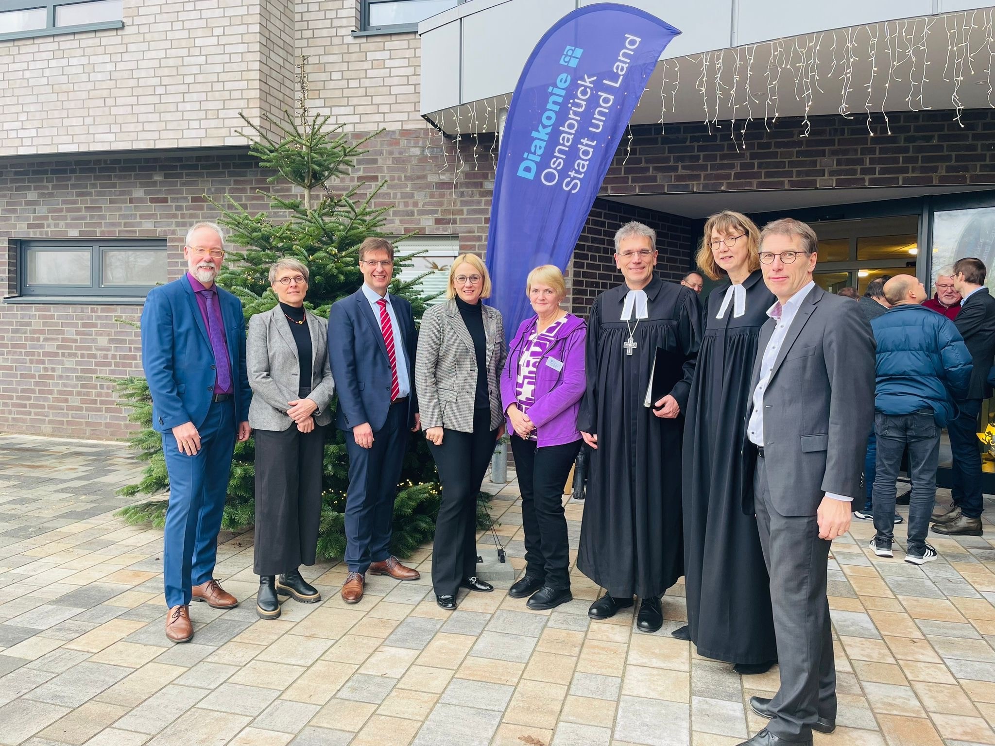 Große Worte für ein einzigartiges Bauprojekt: Am 7. Dezember, gut zwei Jahre nach dem offiziellen Spatenstich, ist die neue Pflegeeinrichtung Haus Grüner Garten der Diakonie Osnabrück Stadt und Land mit einer emotionalen Feierstunde offiziell eröffnet worden. Gemeinsam mit zahlreichen Bewohner*innen, Mitarbeiter*innen und geladenen Gästen, freute sich die Diakonie-Geschäftsleitung mit Oberbürgermeisterin Katharina Pötter über den Abschluss des rundum gelungenen Neubauprojektes.