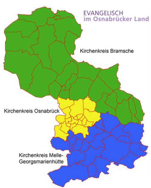 Der Kirchenkreisverband Osnabrück-Stadt und -Land besteht aus den Kirchenkreisen Bramsche, Melle-Georgsmarienhütte und Osnabrück mit insgesamt 63 Kirchengemeinden.